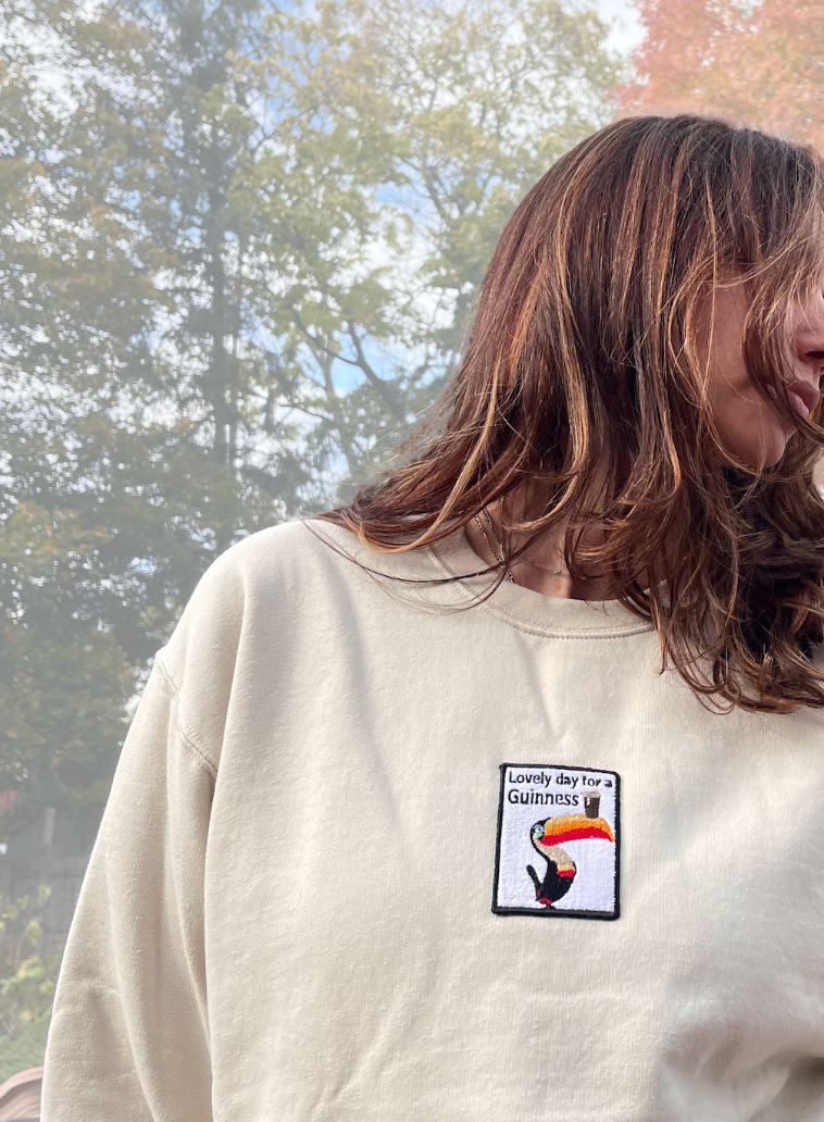 Raise a toast to comfort and style with our exceptionally soft, tan crewneck sweatshirt, featuring a distinctive embroidered Guinness patch. This isn't just a patch; it's a nod to tradition and quality, perfect for Guinness enthusiasts or anyone who appreciates a classic, cozy look. The relaxed fit makes it ideal for game days, pub visits, or simply relaxing by the fire on a crisp autumn night. Celebrate good taste in ultimate comfort!